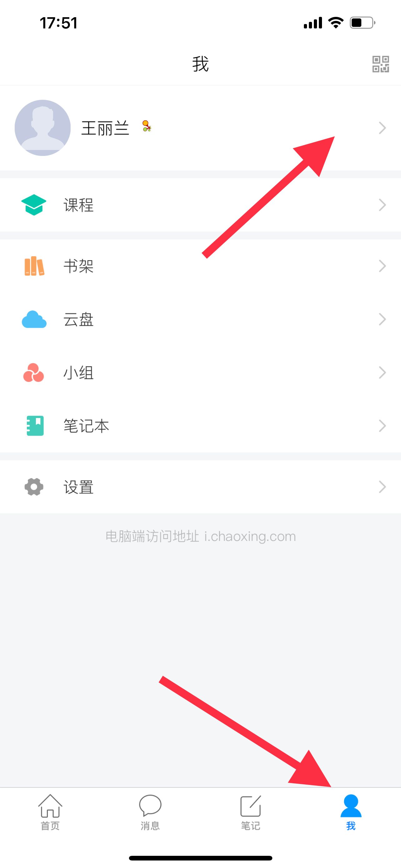 1、登录原有账号点击下方“我” 找到自己姓名,点击左侧箭头