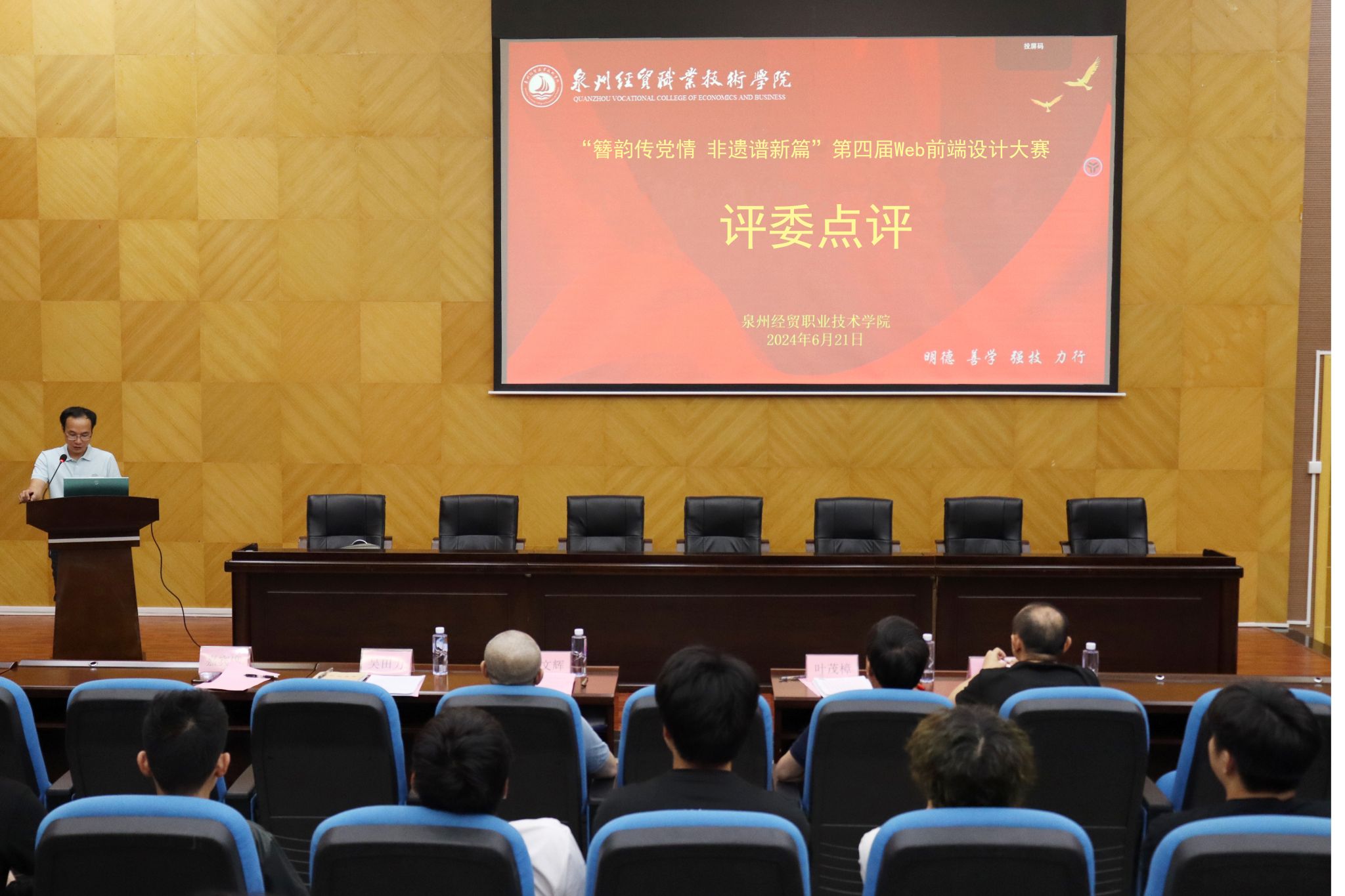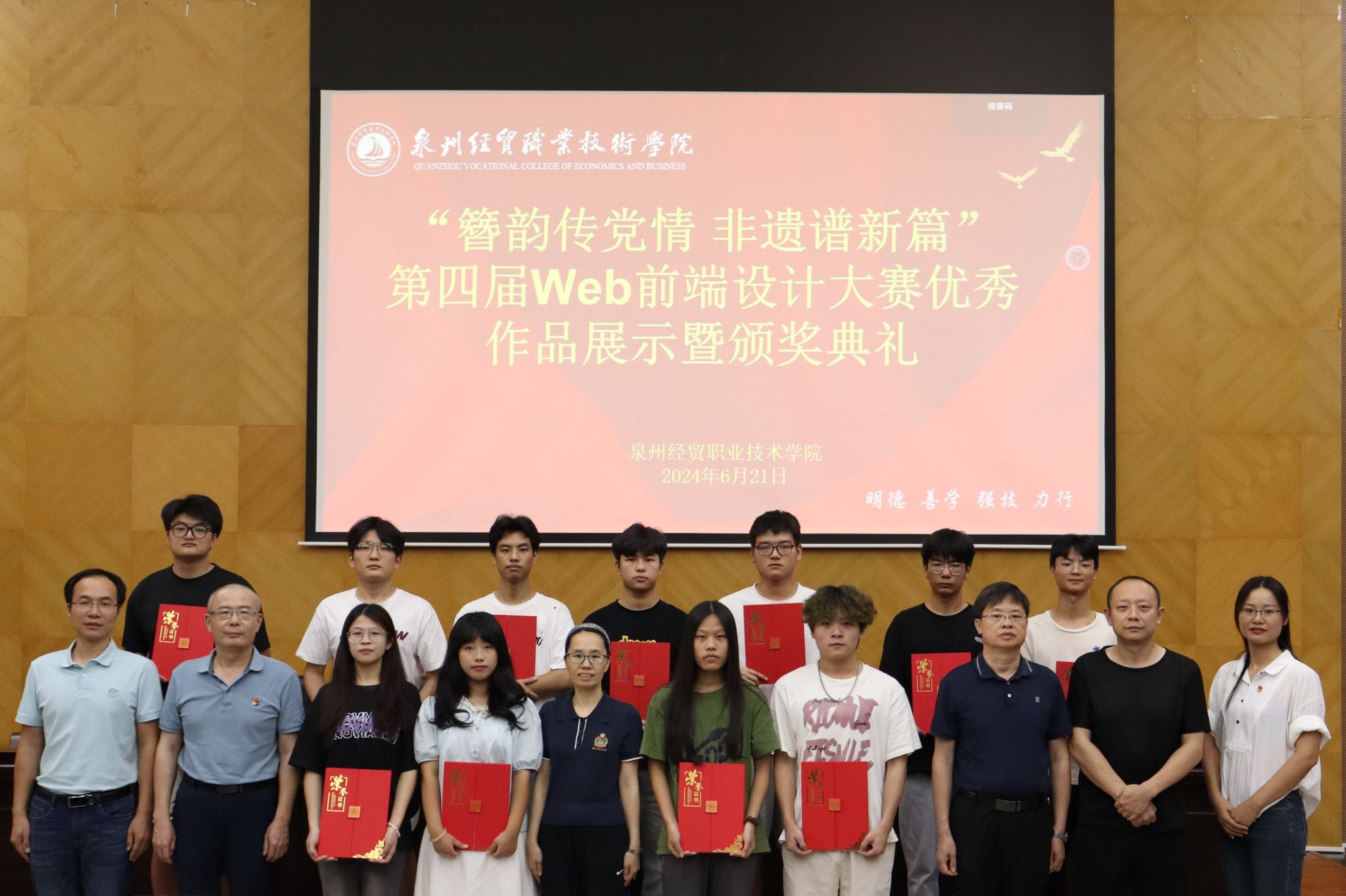 6月21日,由信息技术系、网络电教中心联合举办的“簪韵传党情,非遗谱新篇”第四届Web前端设计大赛优秀作品展示暨颁奖典礼在学术报告厅举行。信息技术系、网络电教中心、软件工程系相关负责人,竞赛获奖者和师生代表参加了典礼。