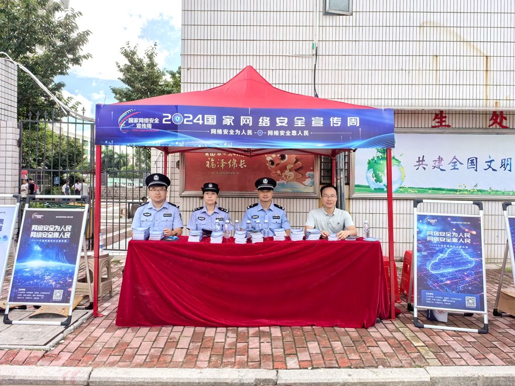 泉州经贸职业技术学院联合鲤城网安大队,在校园内设置“2024年网络安全宣传周”宣传点,向师生发放网络安全宣传手册。